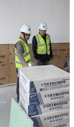 考察過程中,吳紹兵董事長仔細查看了現(xiàn)場使用的“龍牌礦棉裝飾吸聲板”等建筑材料,逐項核實其防火等級、環(huán)保性能等關(guān)鍵指標(biāo),并強調(diào)要始終堅持質(zhì)量第一、安全至上的原則,確保每一項工序、每一種材料都符合醫(yī)療建筑的特殊要求,將質(zhì)量、安全、進度的協(xié)同管理貫穿始終。