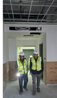 在施工現(xiàn)場,吳紹兵董事長與隨行人員仔細察看了墻面施工工藝,對醫(yī)療項目特種建材的應(yīng)用效果進行了細致考察。董事長對現(xiàn)場施工規(guī)范,安全措施落實到位給予了高度評價,充分肯定了馬總在項目管理上的高標(biāo)準與嚴要求。